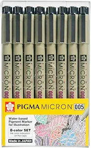 SAKURA Pigma Micron 005 8 Color Set Water Based Pigment for Illustration